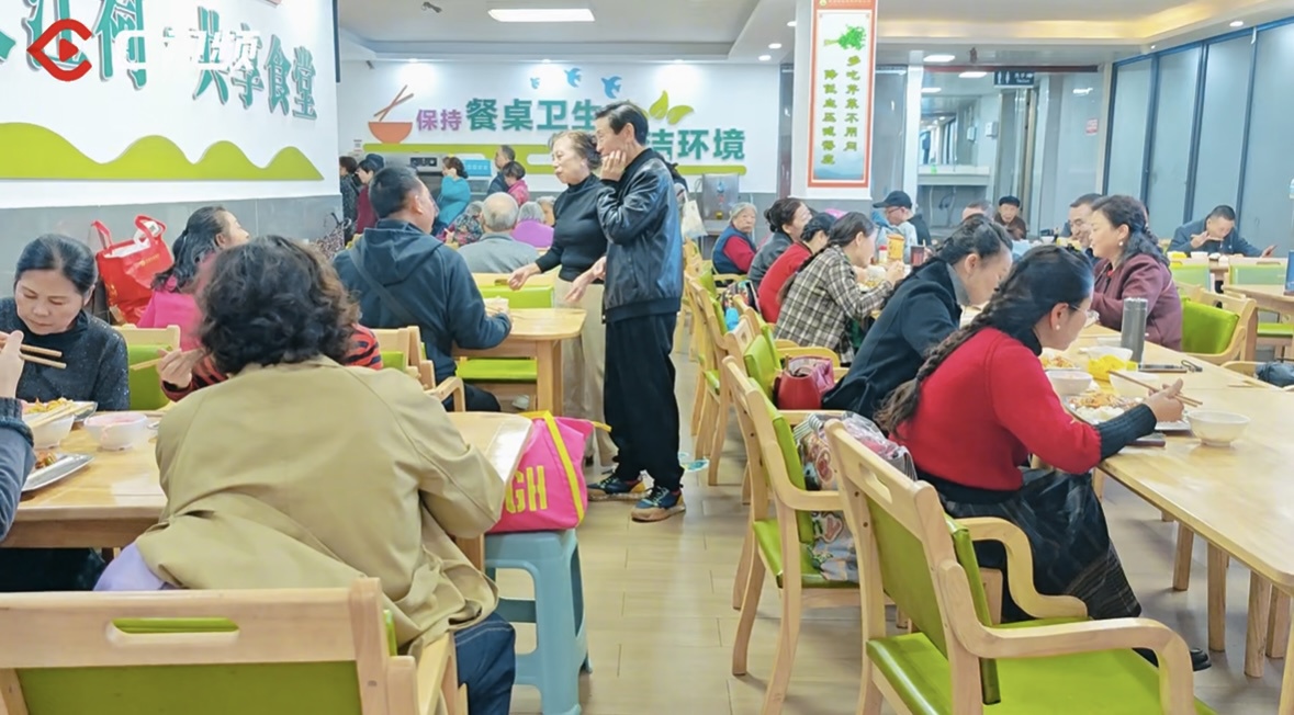 10月29日,重阳节当天,达州市通川区文江祠社区共享食堂内人声鼎沸,洋溢着节日的温暖气氛。上午惠民表演、健康义诊活动刚落幕,临近11点,食堂已座无虚席。