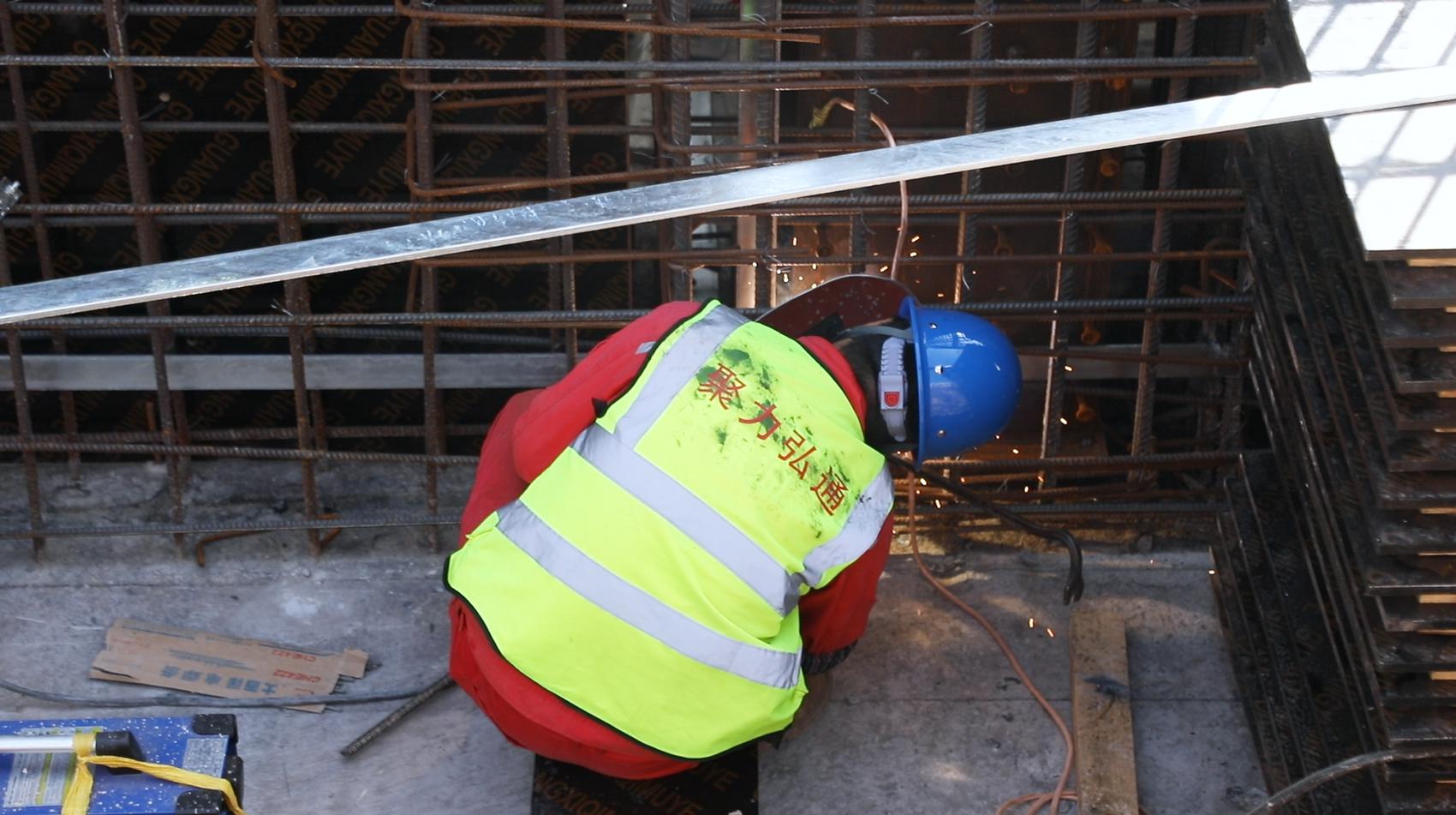走进工地,一幅热火朝天的建设画卷映入眼帘:挖掘机挥臂作业,压路机来回碾压,吊装机精准吊装,机械轰鸣声交织成激昂的“春之声”。百余名建设者分布在各个作业面,正有条不紊地进行110千伏配电楼施工、变电站围墙挡墙浇筑以及最后的支护桩收尾工作。与年初相比,110千伏配电装置楼的主体构架已拔地而起,工人们正默契配合,加紧进行电缆夹层的基础模板施工。一旁,焊接工人手持焊枪,在闪烁的弧光中精准作业,为装置楼筑牢坚实的“筋骨”。
