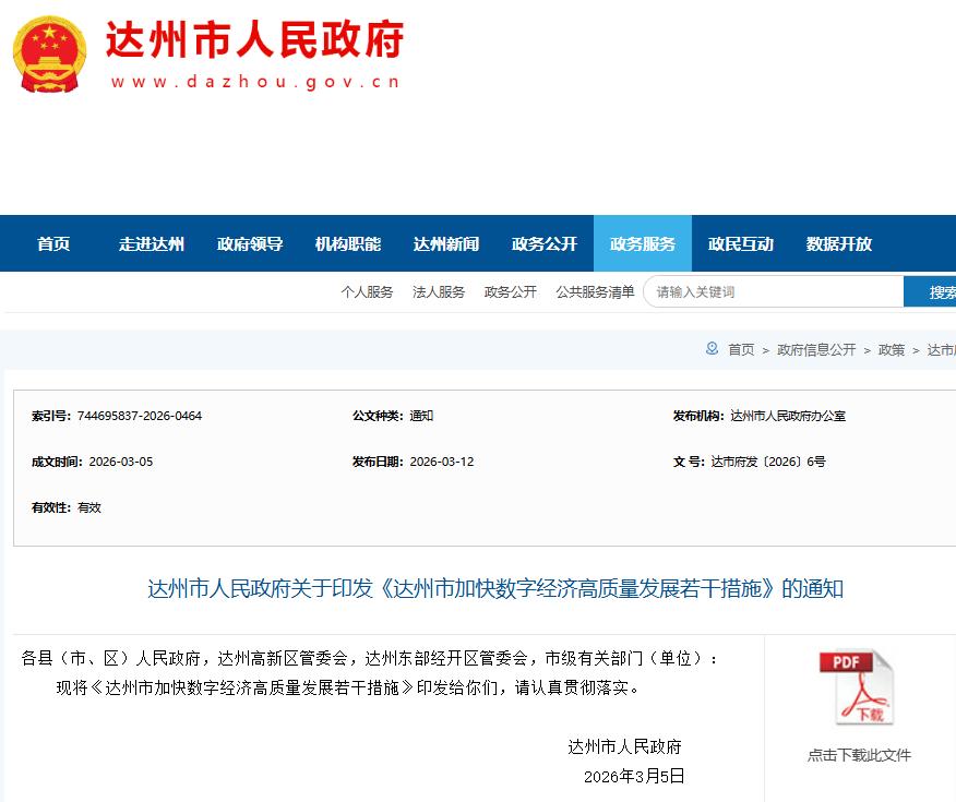 需要注意的是,本《措施》自印发之日起施行,有效期3年。原《达州市促进数字经济产业发展的若干措施》(达市府发〔2022〕20号)和《支持“算力+”产业发展十条措施》(达市府发〔2023〕8号)同时废止。