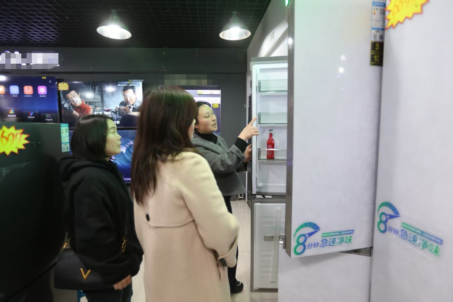 在城区某电器卖场,“以旧换新享补贴”的宣传海报格外醒目,冰箱、空调、洗衣机等家电新品排列得整整齐齐。销售人员主动上前,一边向顾客介绍产品能效优势,一边教顾客算补贴账,清晰告知旧家电抵扣标准、国补与厂补叠加方式,让群众直观感受政策带来的实惠。