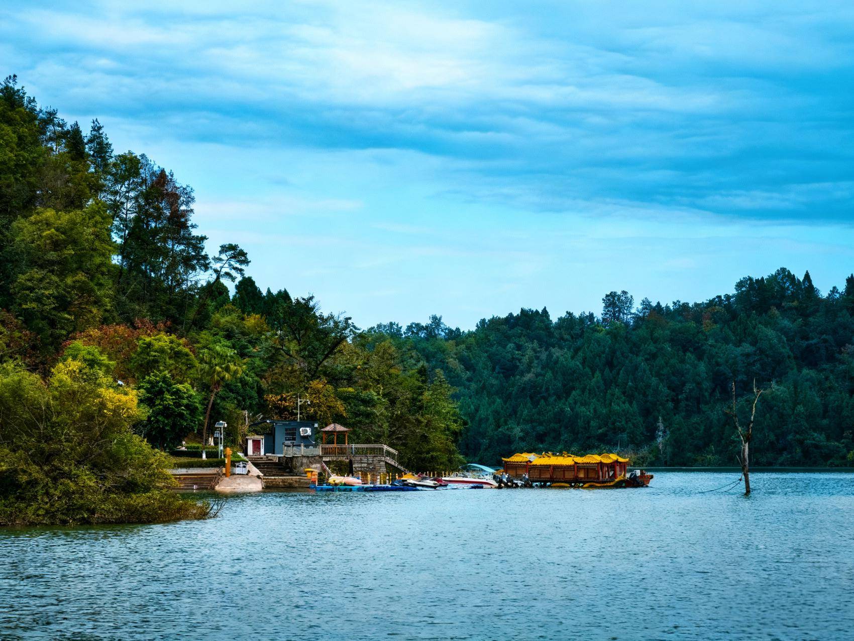 “这里三面环水,一面靠山,山峦起伏,树木葱郁,景色宛如仙境。”摄影师们边赞叹着所见之景,边拿起相机定格瞬间。