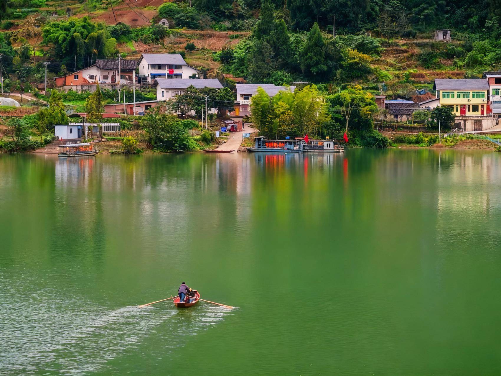 无人机飞行在宣汉洲河的上空,洋烈水乡的美景尽收眼底,摆渡船从水面划过,碧绿的河水荡起涟漪,让冬日里的洋烈水乡更添一丝生机。