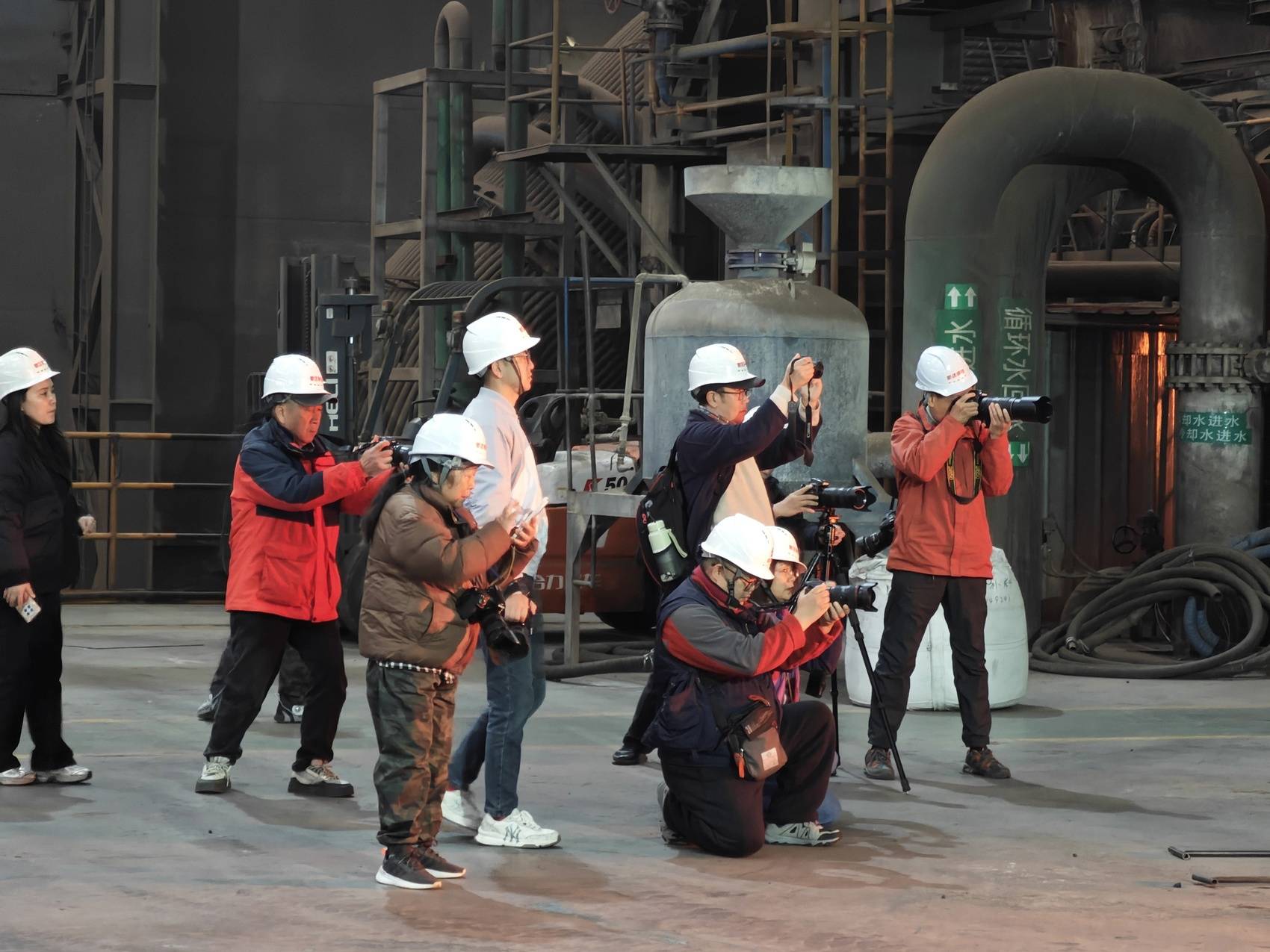在四川德润钢铁集团航达钢铁有限责任公司(以下简称:航达钢铁)的生产区内,庞大的生产设施与繁忙的作业场景构成了极具视觉冲击力的画面,吸引了采风队伍驻足。摄影者们精心寻找拍摄角度,不时发出“太安逸了”、“巴适”的赞叹。摄影爱好者祝旭表示:“人天生对宏大的事物有感应,钢铁厂带来的震撼感让大家创作热情高涨。”