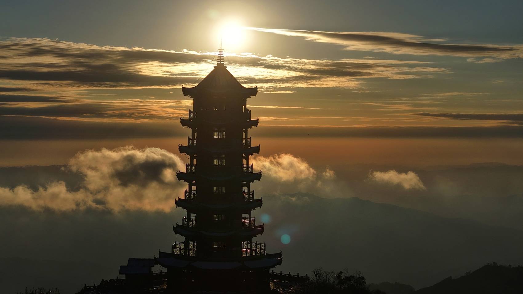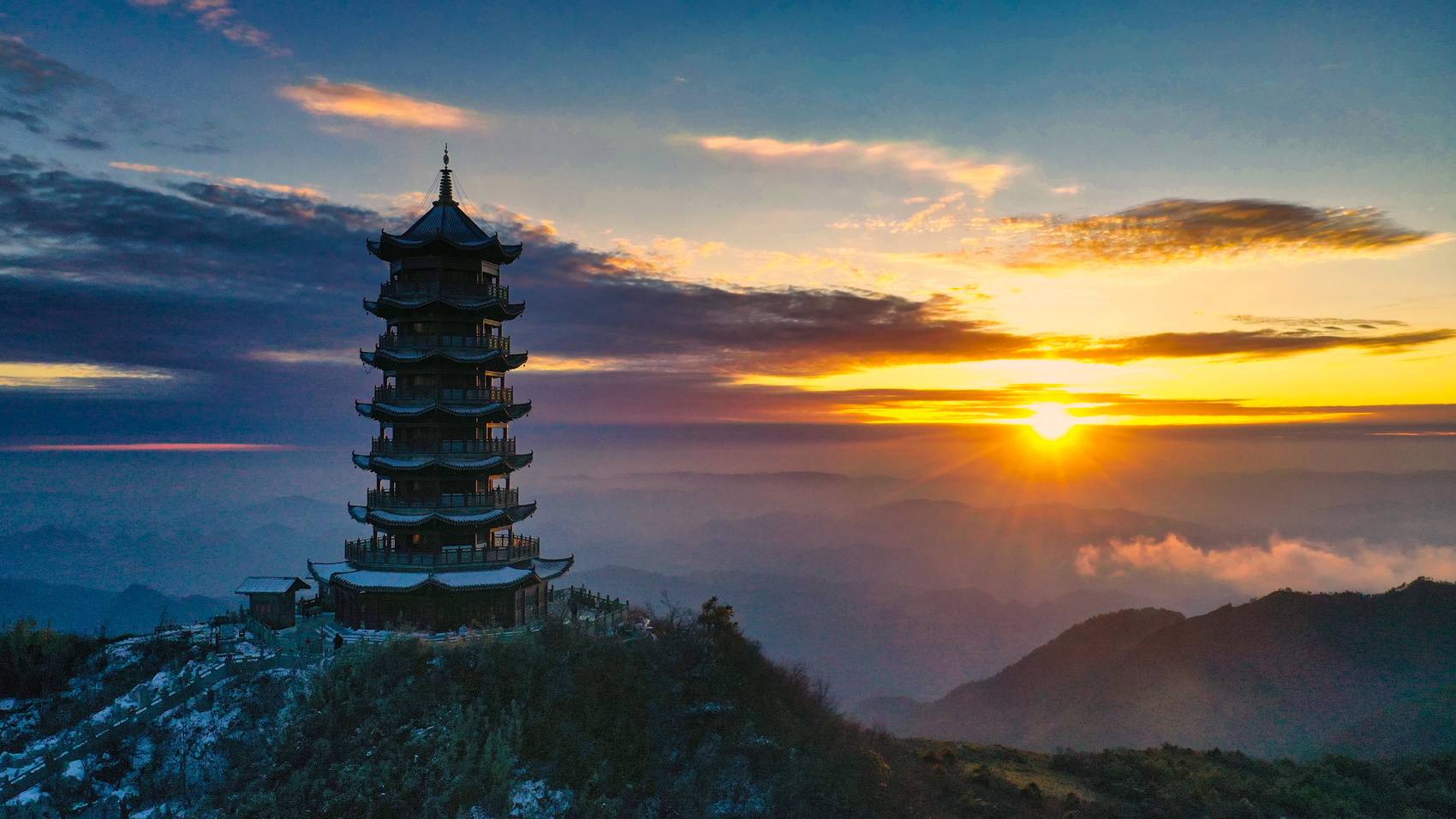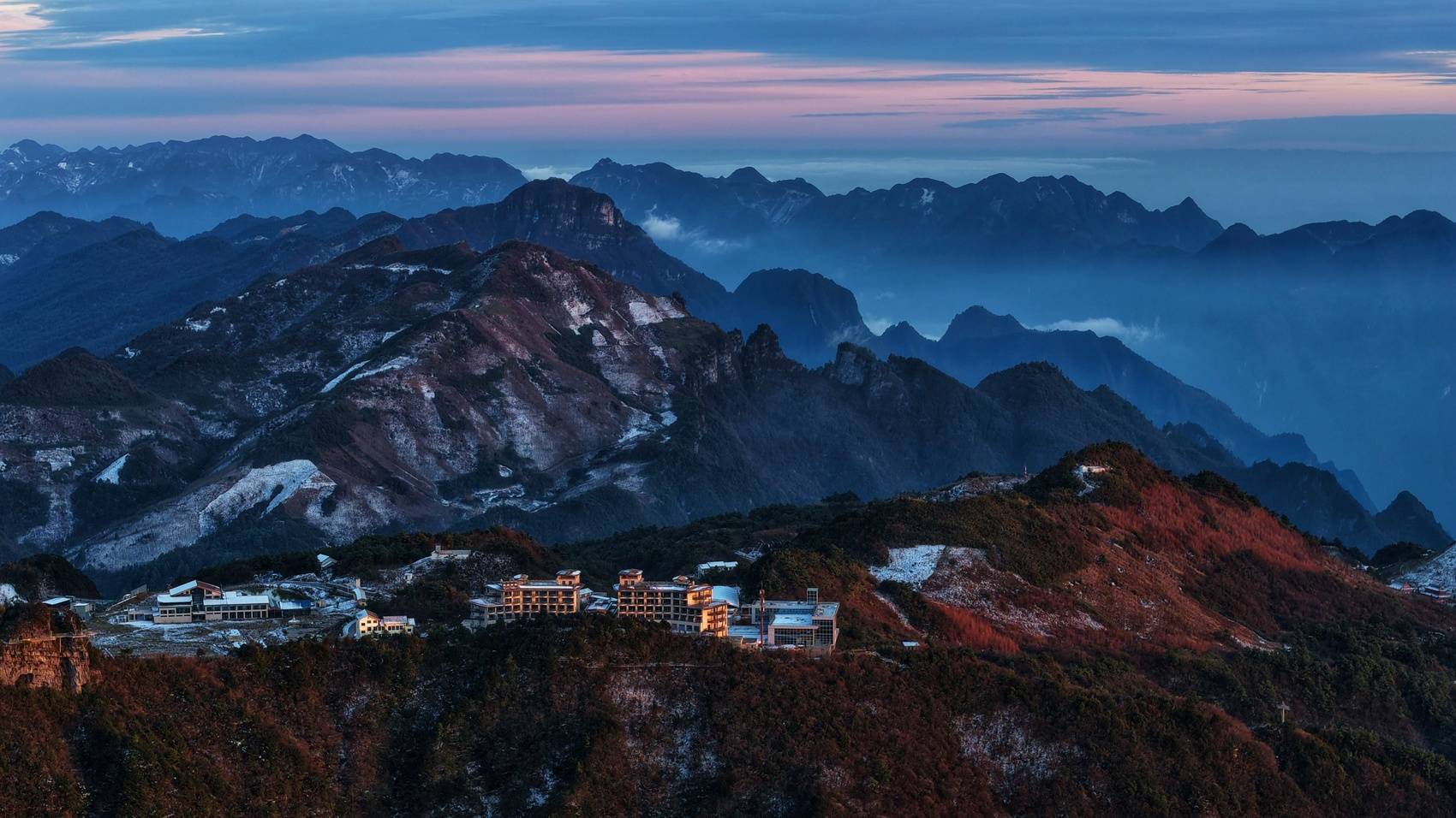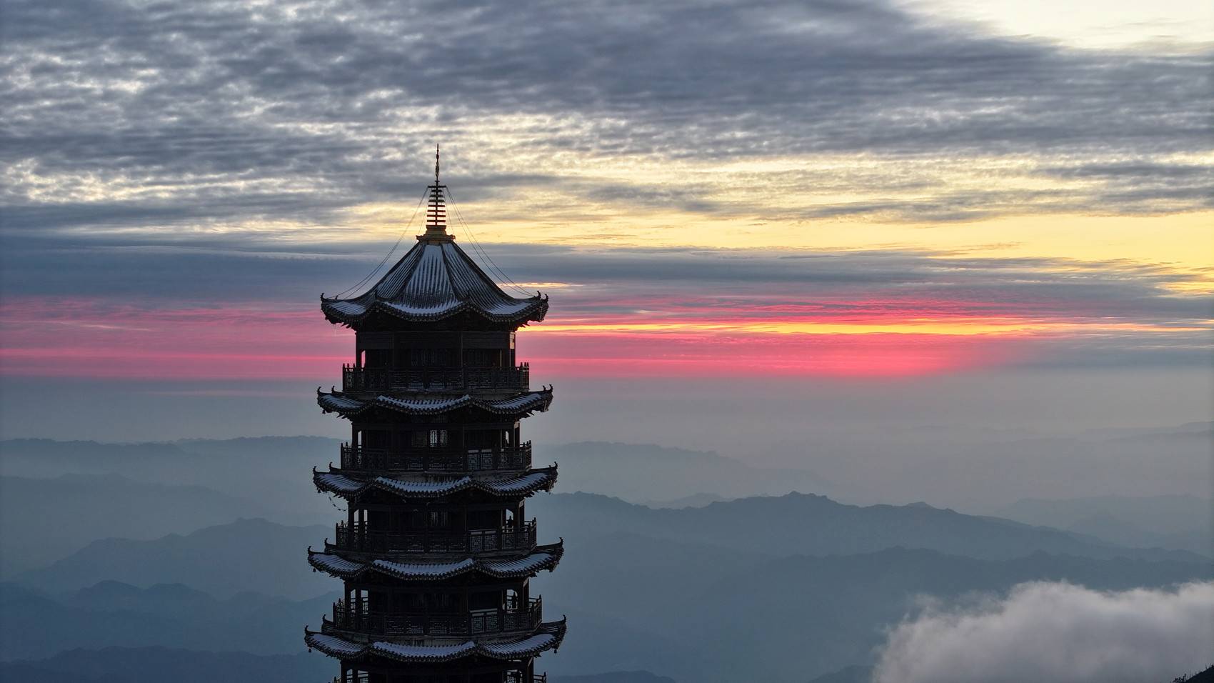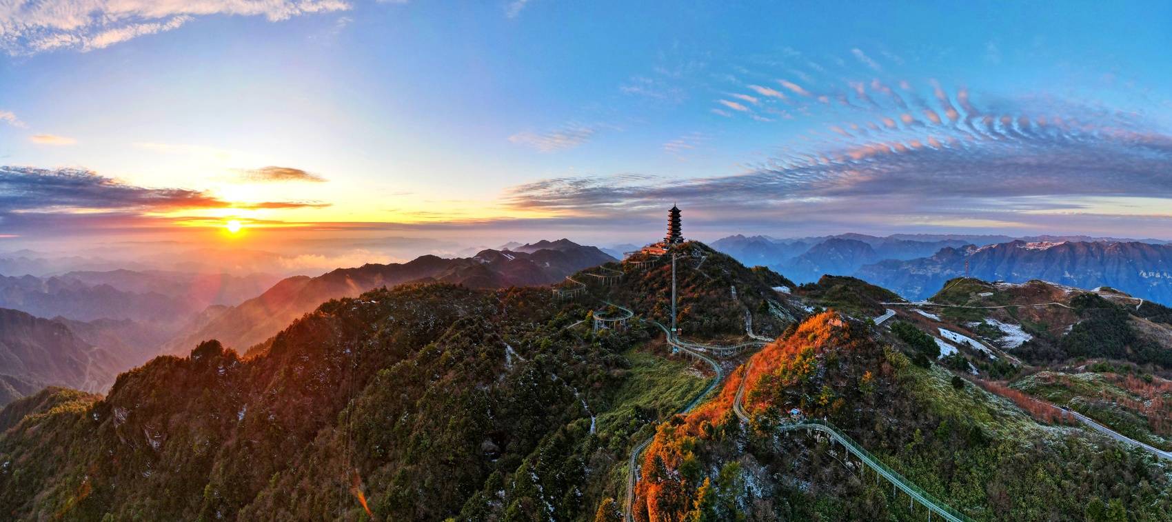 初雪妆扮,晚霞泼彩,冬日的巴山大峡谷上演了一场自然与光影的双重盛宴。两天前,巴山大峡谷景区罗盘顶迎来了今年的第一场雪。11月19日傍晚,当洁白的雪迹尚未完全消融,“旅拍宣汉”影像采风团的摄影师们登顶巴山大峡谷景区罗盘地标——状元楼,意外邂逅了一场梦幻粉色晚霞。