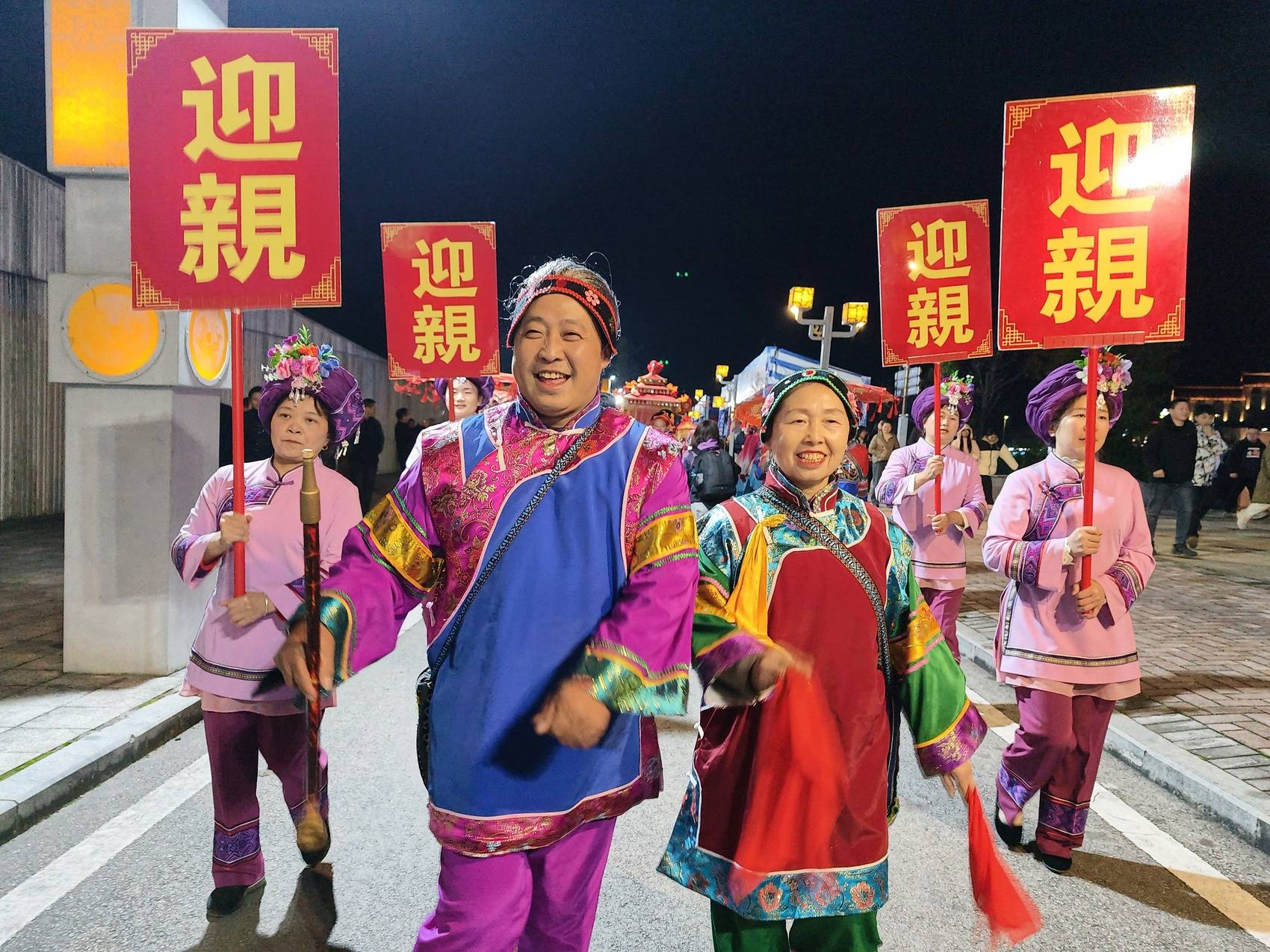 随着抬花轿的号子响起,浩浩荡荡的迎亲队伍向着婚俗现场行进。身着民族服饰的表演者们吸引着在场观众的目光,让大家沉浸式体验到土家族文化。