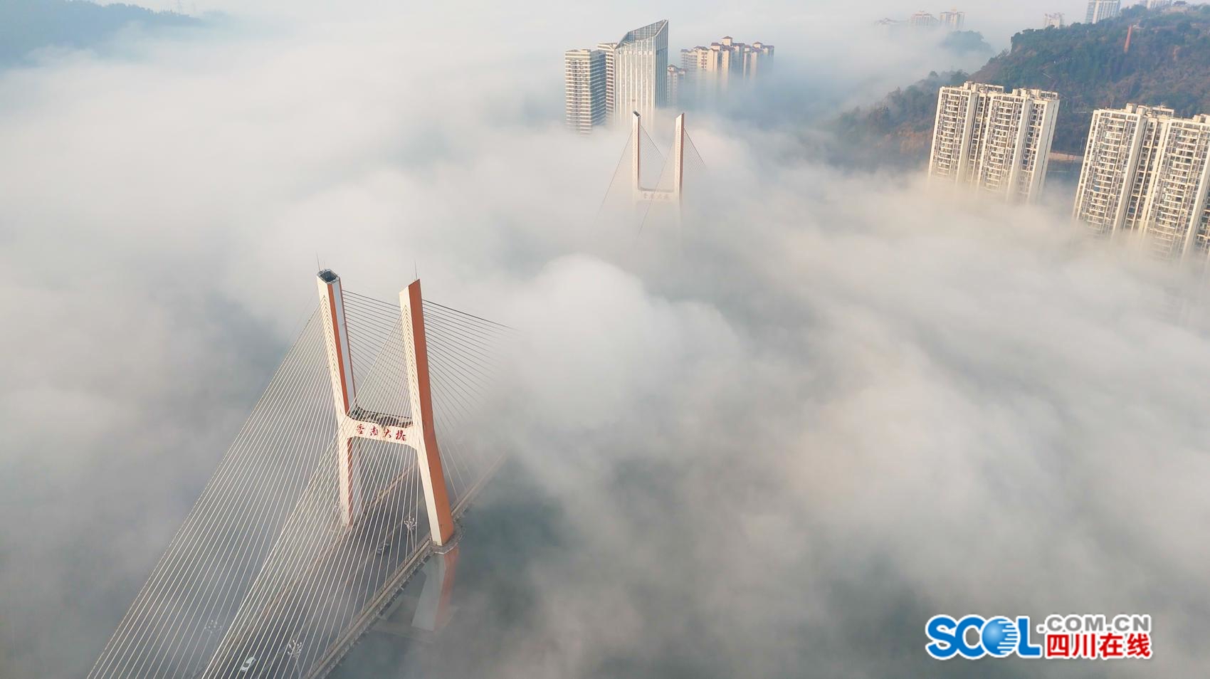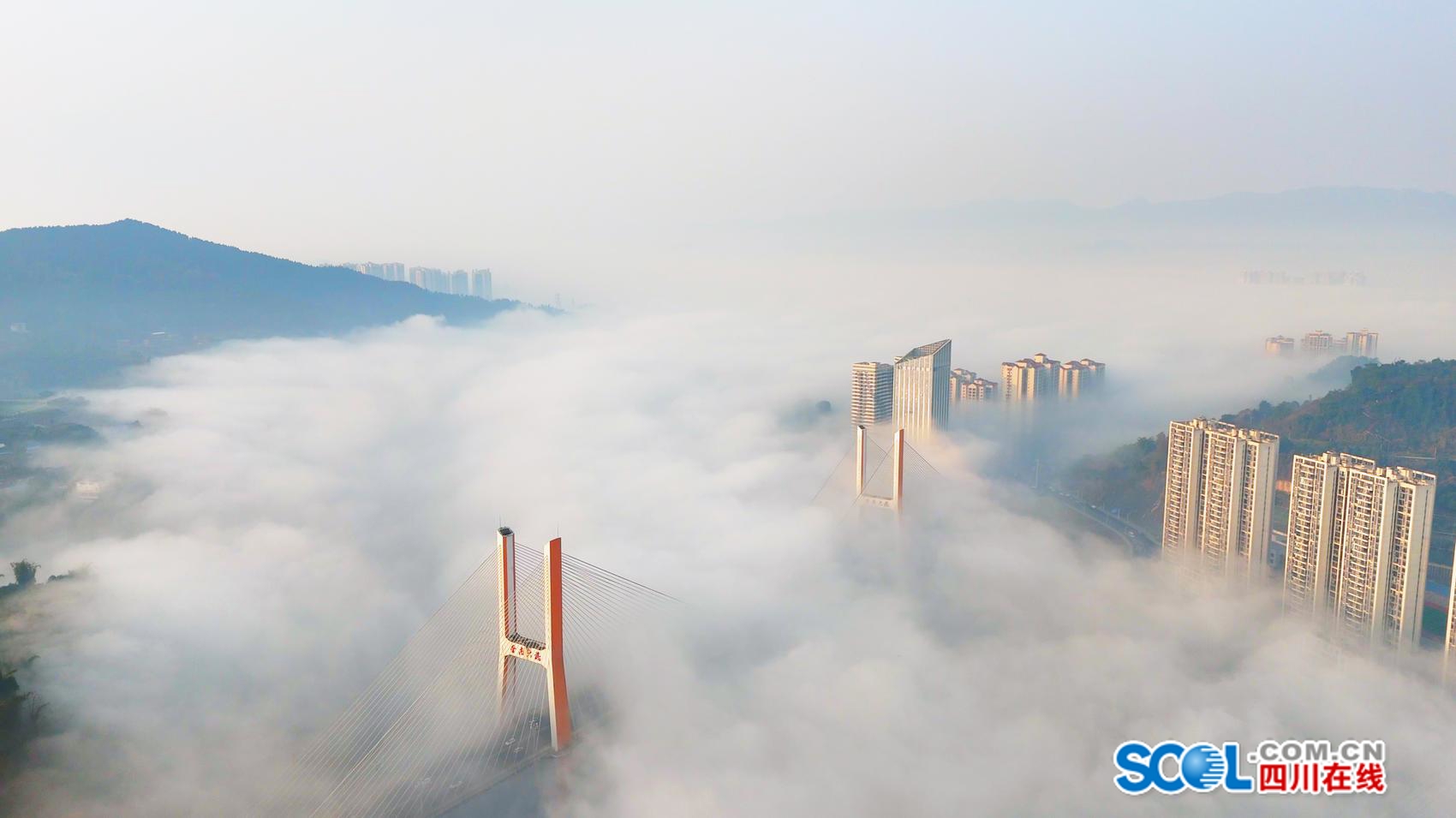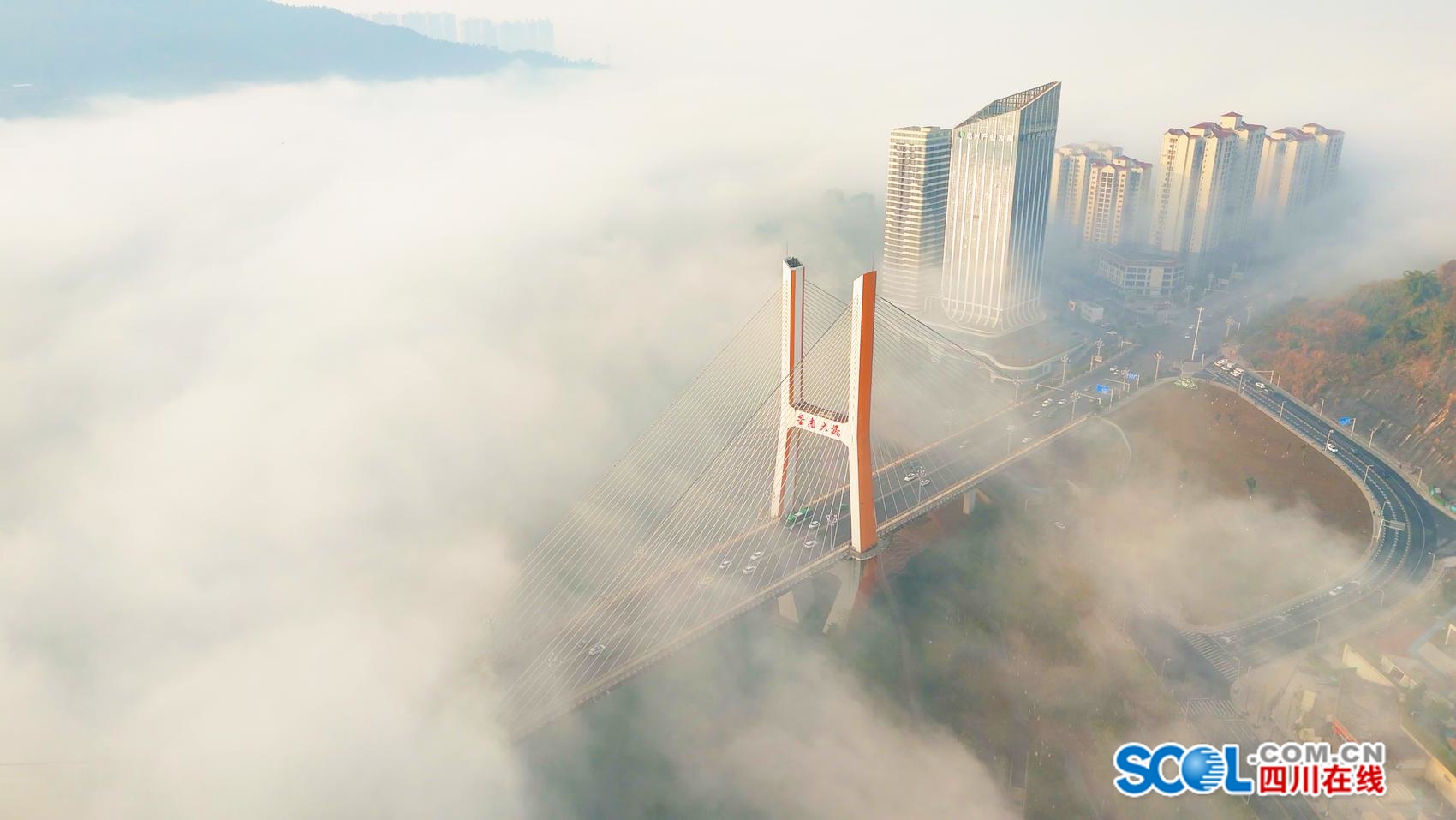 冬雾将散,金桥迎晨,这是属于达州的诗意瞬间。