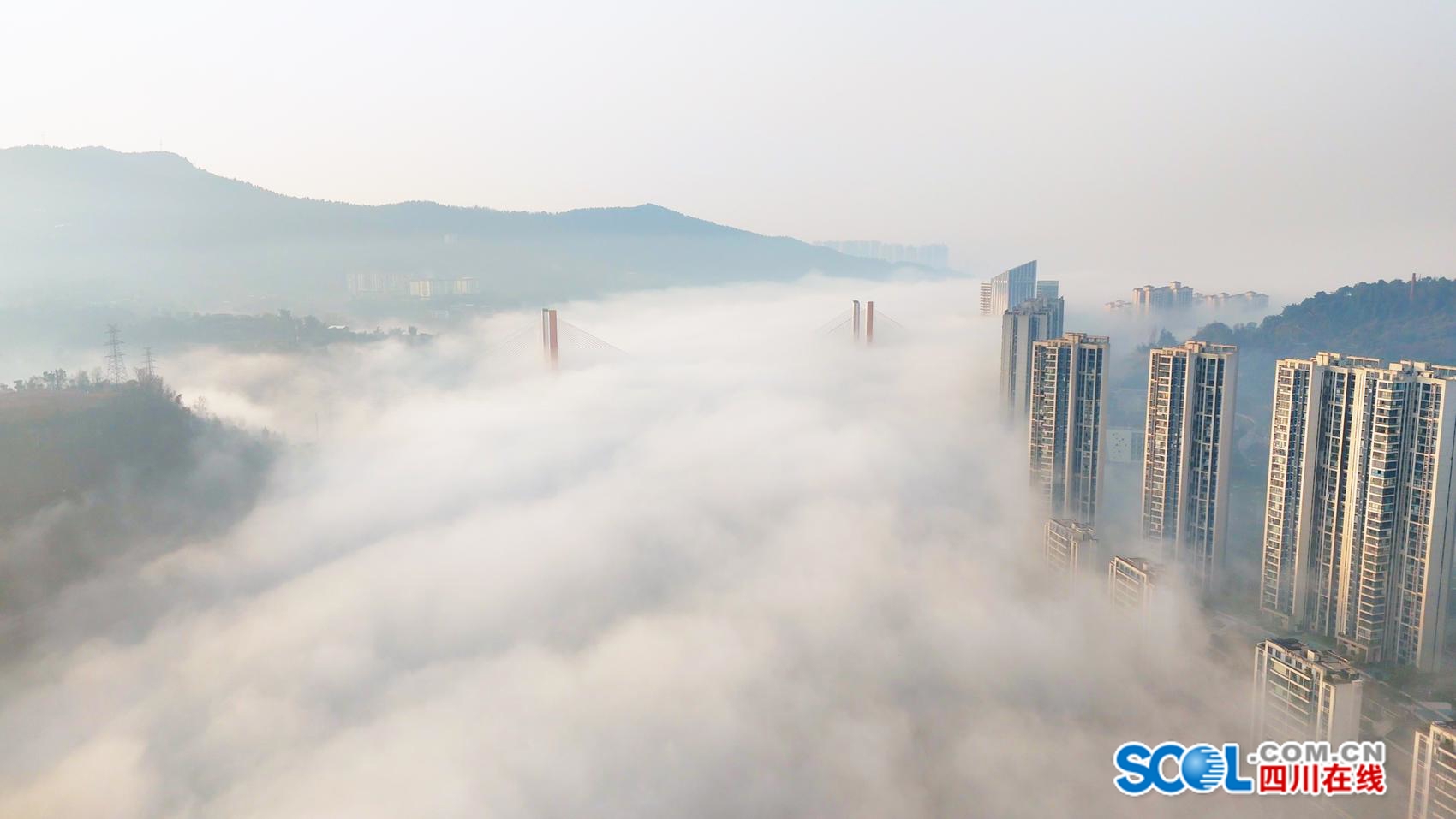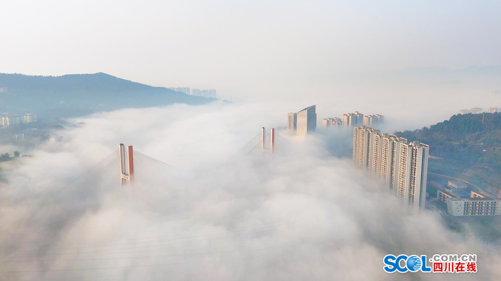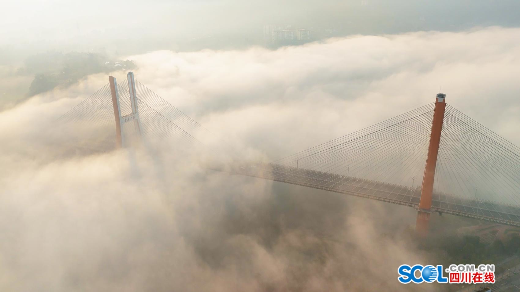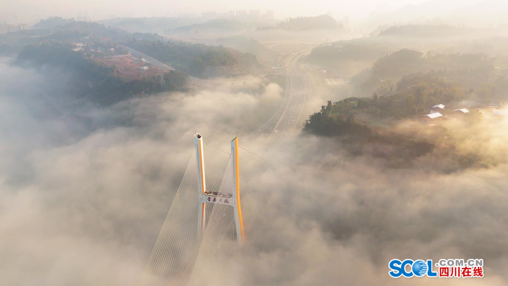 冬雾将散,金桥迎晨,这是属于达州的诗意瞬间。