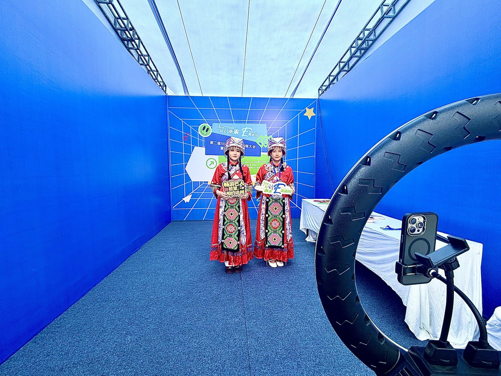 “打竹板,热闹欢,今天咱把达州赞。八台山巅看云卷,巴山峡谷藏奇观,賨人谷里故事传。”9月27日,来自重庆青年职业技术学院专业学习跨境电商的大二学生小凤化身网络主播,向直播平台的线上观众推介达州美食美景。当天,第二届川渝数字营销创新大会暨电商技能大赛决赛在达州市达川区天益广场举行。来自川渝各地市州(县、区) 及达州各县(市、区)共38支队伍各自使出看家本领,在现场一决高下。本次比赛结果将于9月28日上午公布。