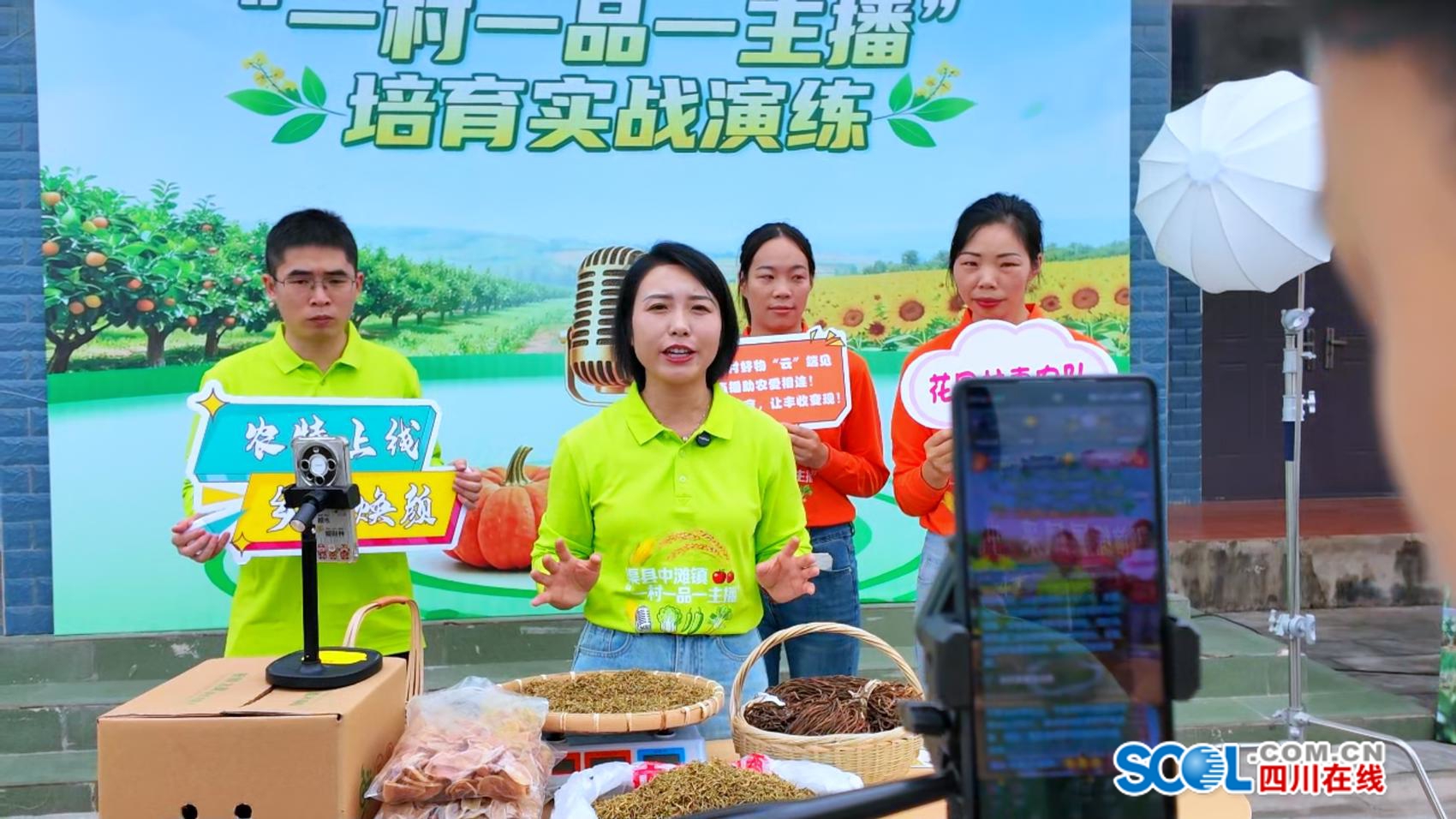 10月11日,达州市渠县中滩镇,“一村一品一主播”培育实战演练活动举行。