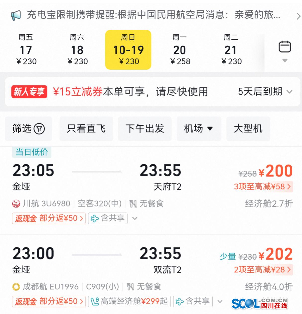 航空方面,19日晚间,川航、成航执飞的两趟航班已优化起飞时刻,正开仓售票——