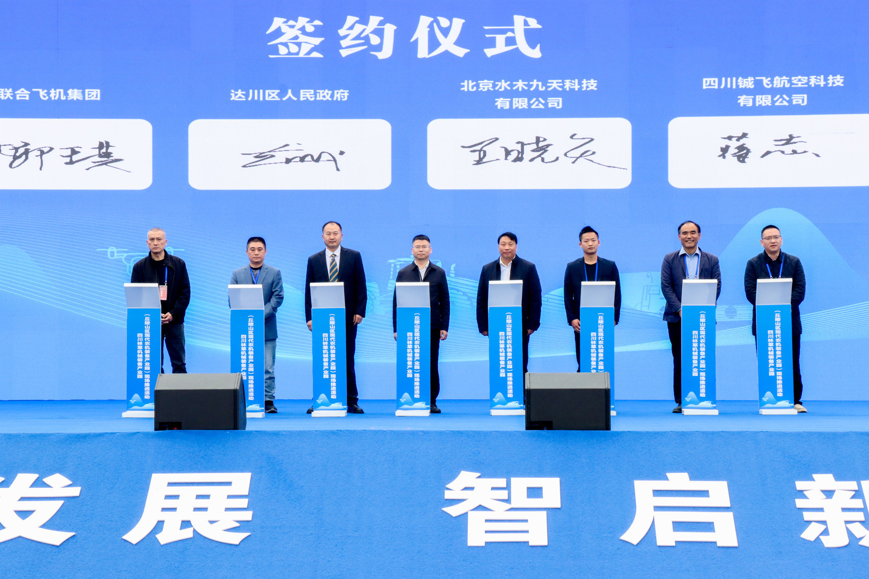 第二轮签约是达川区政府与联合飞机集团、北京水木九天科技有限公司等7家企业签约,这些企业生产产品包含多款无人机。