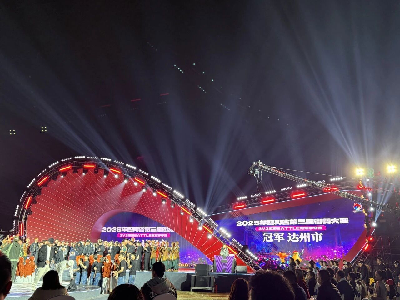 12月15日晚,四川省第三届街舞大赛颁奖晚会在攀枝花市东区阿署达四季花海景区落幕。达州市代表队获得齐舞赛一等奖与个人Battle赛冠军,实现在该项省级权威赛事中的“大满贯”,创造达州街舞竞赛史上的最佳成绩。