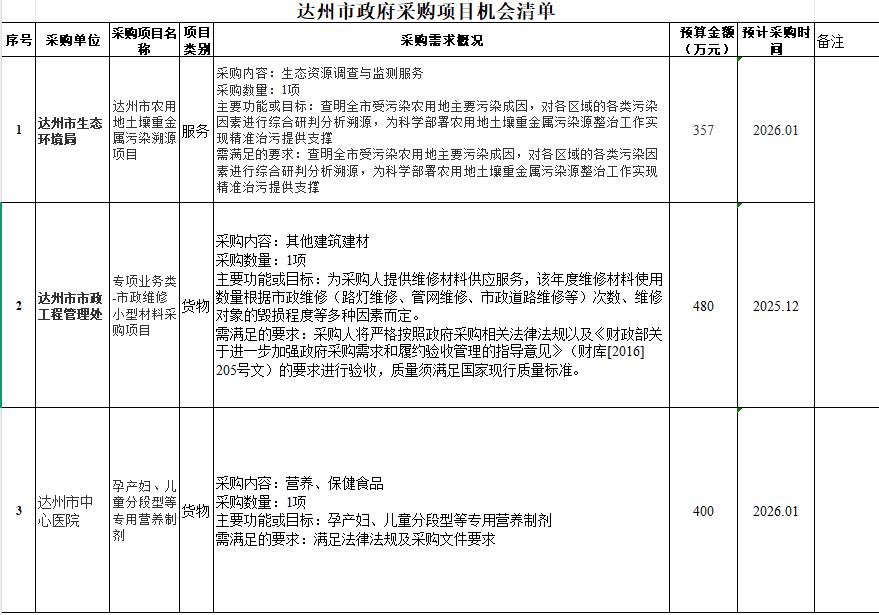 政府采购项目3个,投资金额0.358亿元。民营企业可以关注四川政府采购网“采购公告”模块,即可了解参与具体采购事宜。