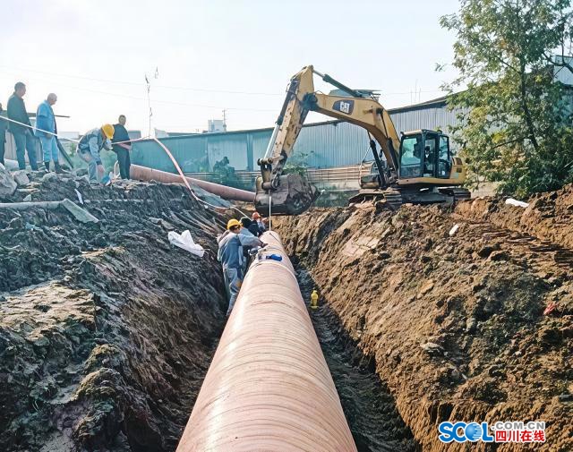 挖掘机配合施工人员进行沟槽开挖、管道吊装与拼接作业,一根根竹缠绕复合管顺着沟槽精准铺设、衔接……近日,达州市大竹县东柳河护城河污水干管二标工程现场一派繁忙景象,施工团队加紧铺设直径为800毫米的竹缠绕复合管。这是鑫竹海(大竹)创新科技有限公司生产的竹缠绕管道首次投入达州的市政污水管网工程施工。