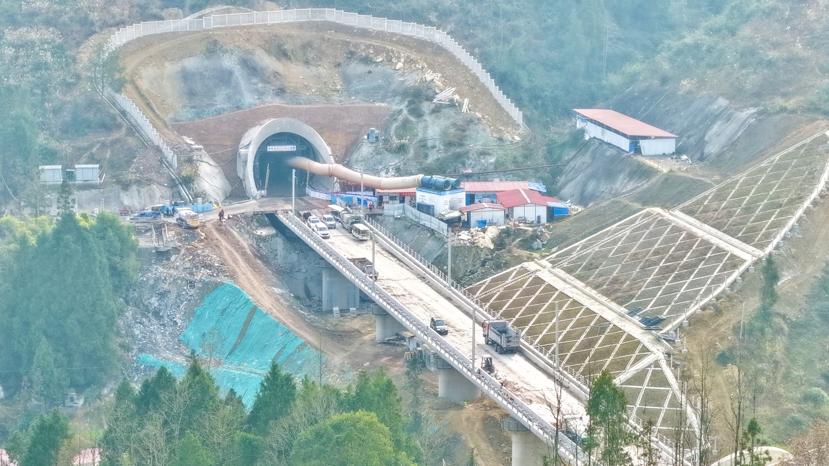 2月8日,全长4288米、位于达州东部经开区境内的成达万高铁峨层山隧道贯通。图据经开视线