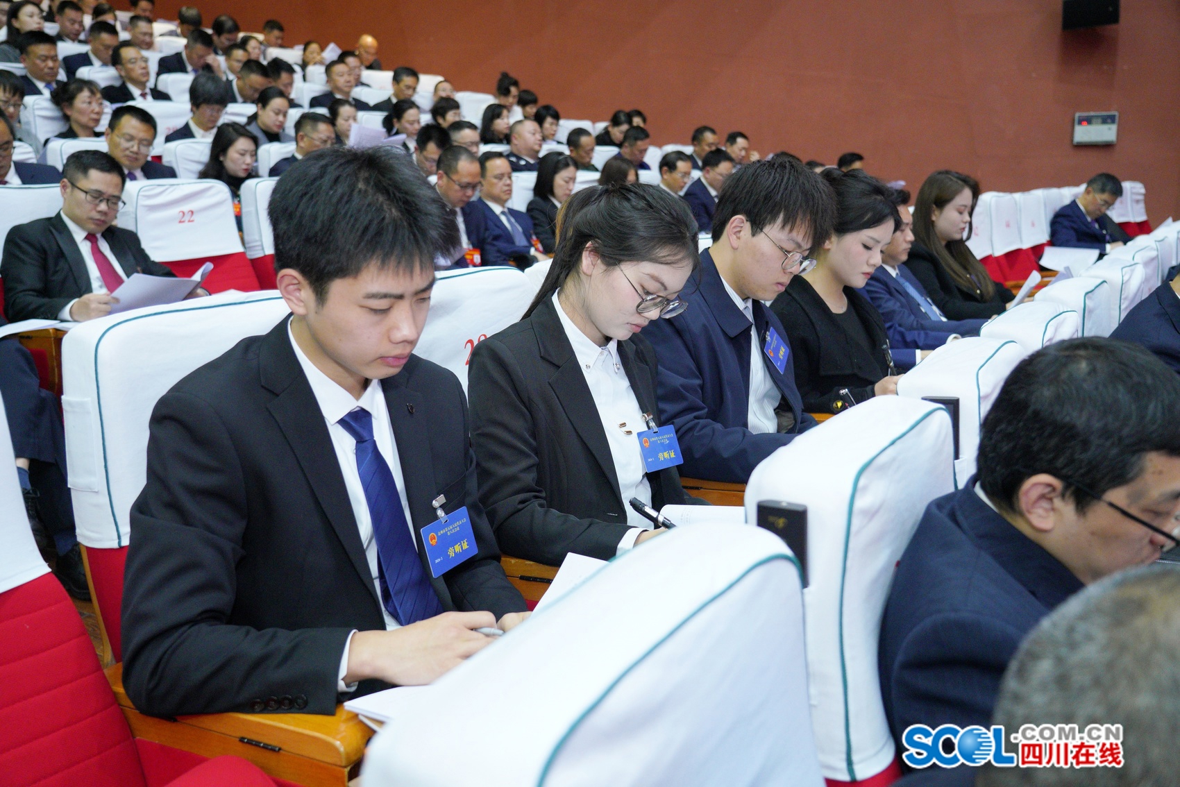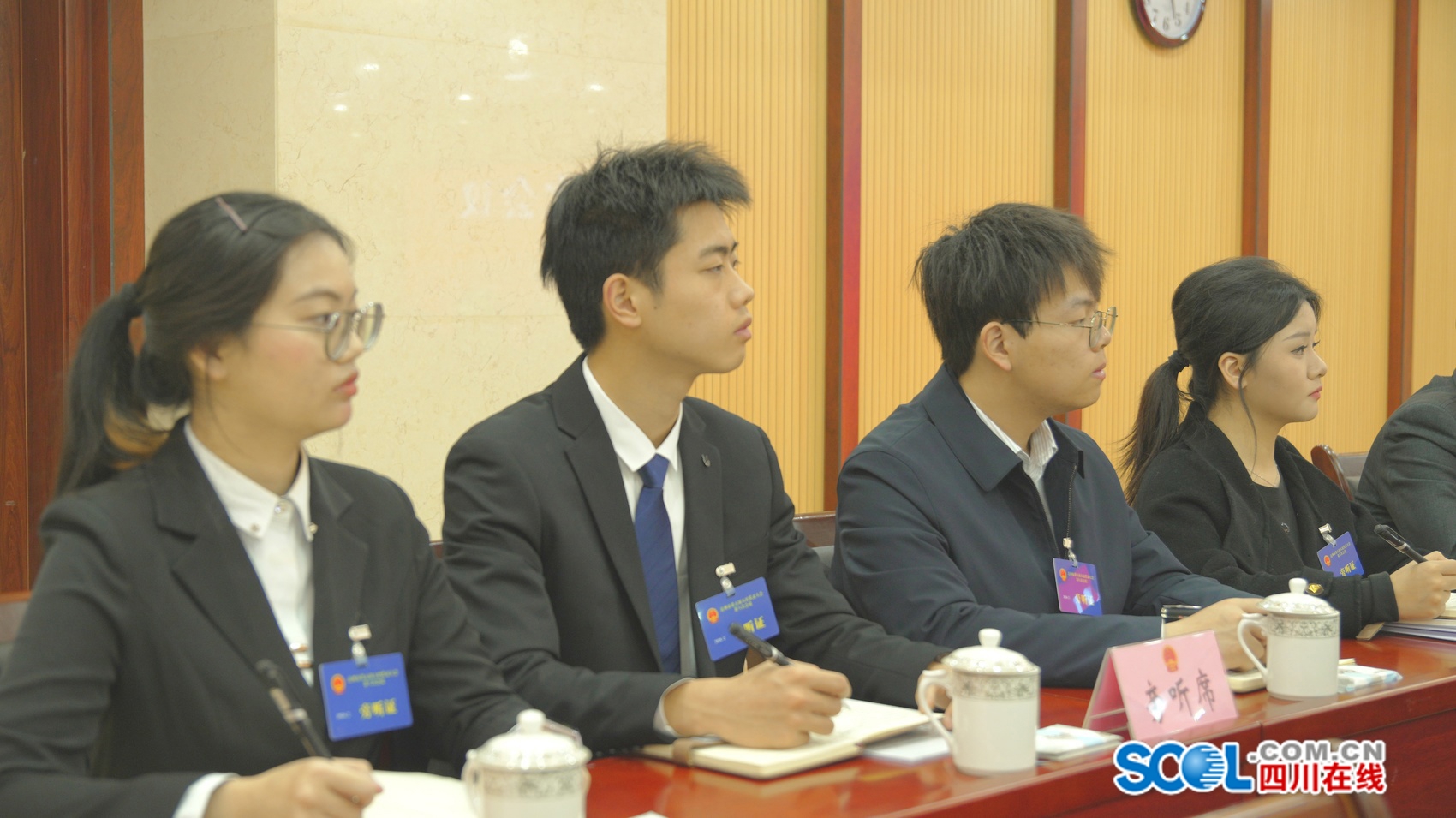 近日,达州市第五届人民代表大会第八次会议开幕会现场,第12排有多张青涩的面孔。和代表委员佩戴的红色证件不同,他们胸前佩戴的证件是蓝色的。当天,4名四川文理学院的学生以旁听公民的身份,近距离感受了人民民主制度的具体内涵。