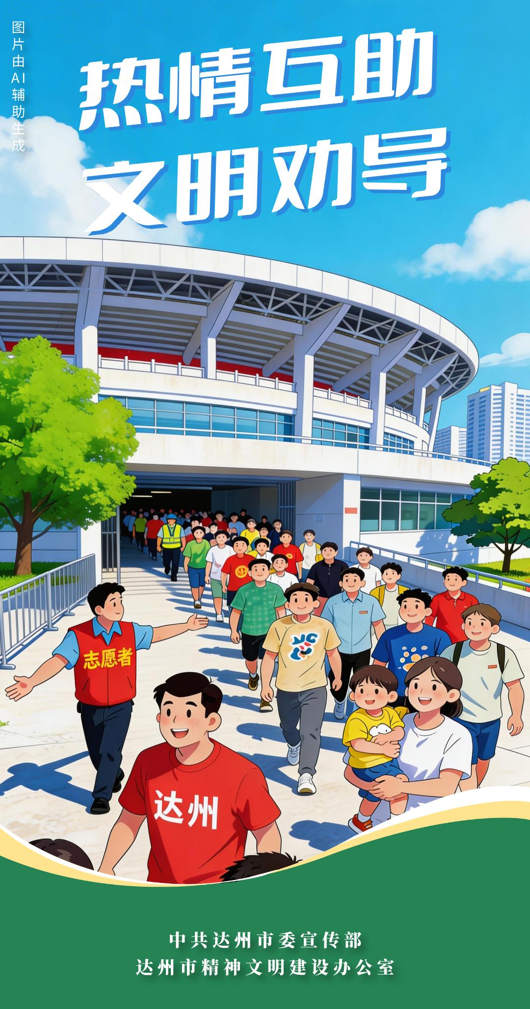 秩序护航盛会,安全守护欢乐。为打造安全有序、热情文明的观赛氛围,3月11日,达州市文明办、市文体旅游局联合发布文明观赛倡议书,号召全市市民与球迷:展巴渠风采,树观赛新风,做文明使者。