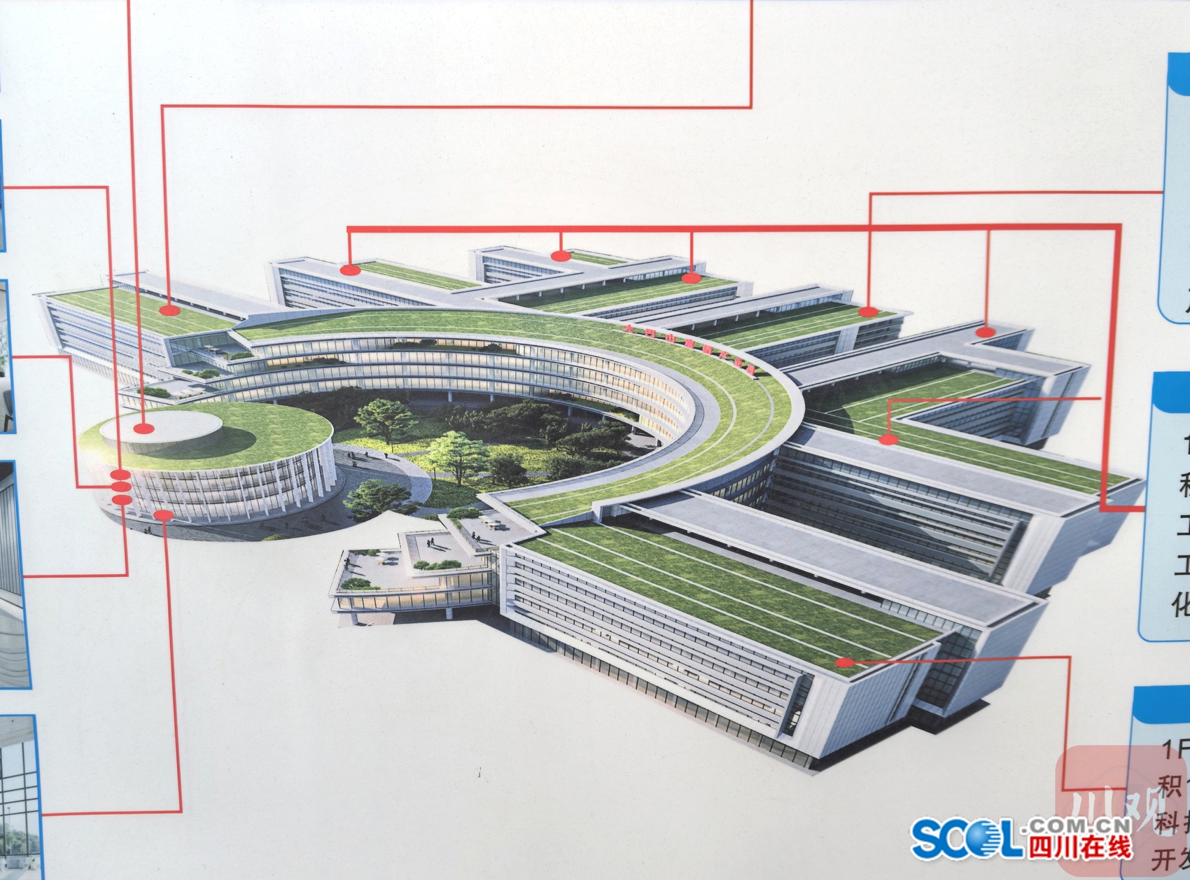 工地外围的展板上,一张效果图显示了产业园建成后的模样——整体呈半弧形,垭口正前方是企业服务中心,弧形背面是8栋生产生活用房。项目总投资8.6亿元,总建筑面积14.48万平方米。